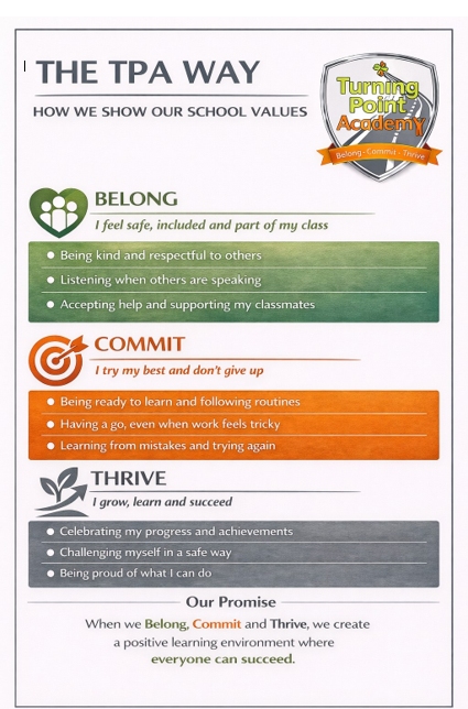 It is very important that positive aspects of praise and reward should have a great emphasis. Pupils respond better to systems which recognise their difficulties and strengths. Pupils can earn Merit Points for following ‘The TPA Way,’ linked to the 3 values of the school, and which promote effective learning habits and routines. Each lesson, up to 3 merits can be achieved - take a look at 'The TPA Way' below and click on the orange button below it to see our system of merits and consequences which are an integral part of of 'behaviour & relationships policy.'